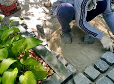 Укладка гранитной брусчатки,
